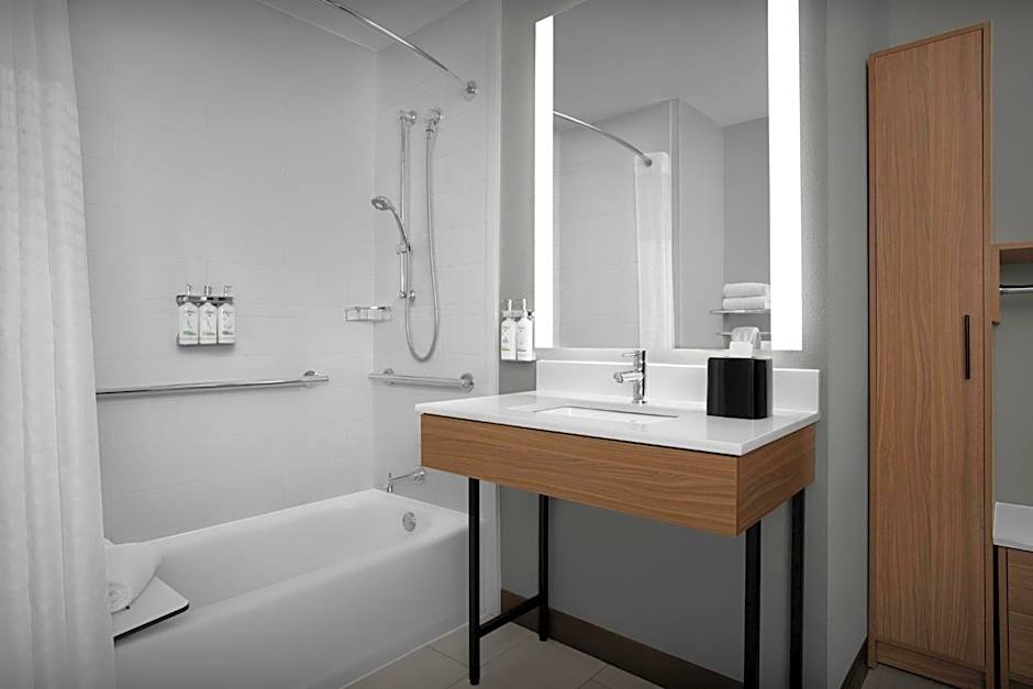 2 Bedroom Suite Mobility Accessible Roll in Shower is 431 square feet and includes 2 double beds 131-150 width.
